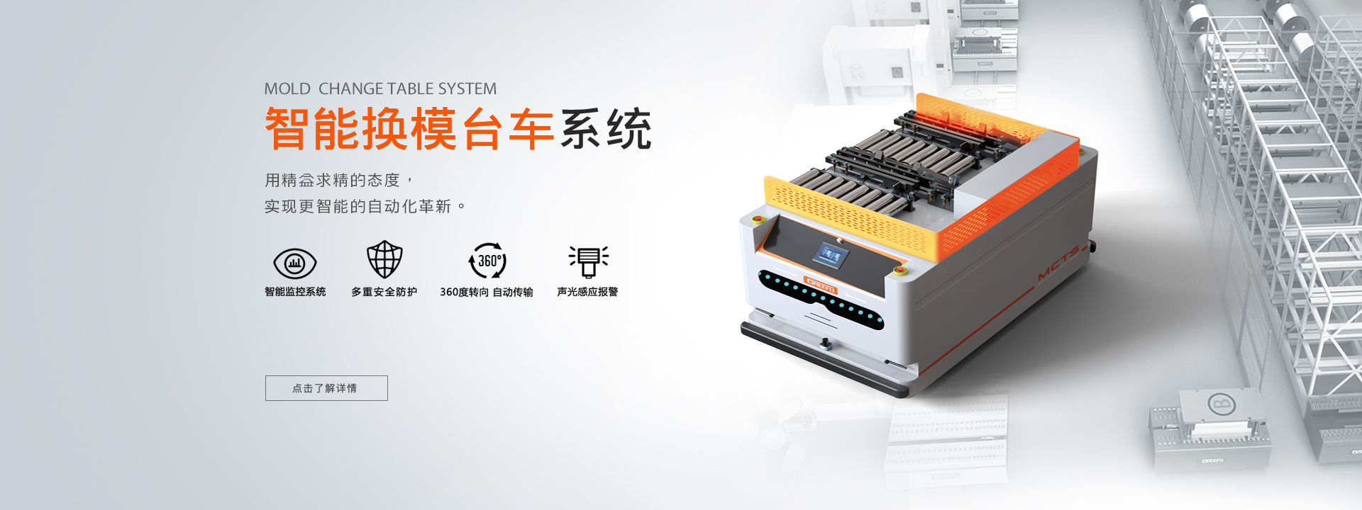 面對(duì)市場(chǎng)不斷出現(xiàn)的新挑戰(zhàn),格萊富助力企業(yè)發(fā)展,為工業(yè)生產(chǎn)提供模具裝夾、模具快換、模具搬運(yùn)、模具倉(cāng)儲(chǔ)等完善的換模自動(dòng)化整體解決方案。使企業(yè)不但實(shí)現(xiàn)模具快速更換、智能轉(zhuǎn)運(yùn)、精益生產(chǎn),還提高效率,優(yōu)化工藝,強(qiáng)化競(jìng)爭(zhēng)優(yōu)勢(shì)...了解更多